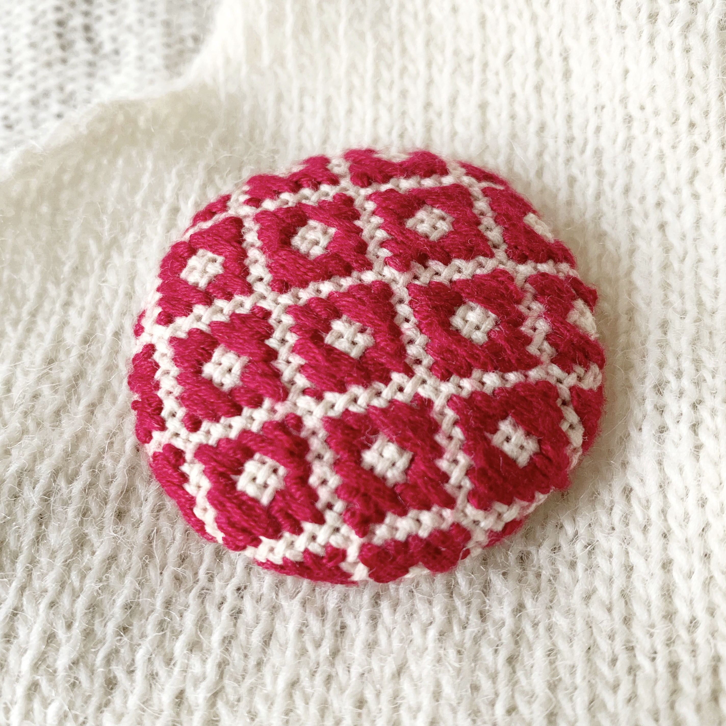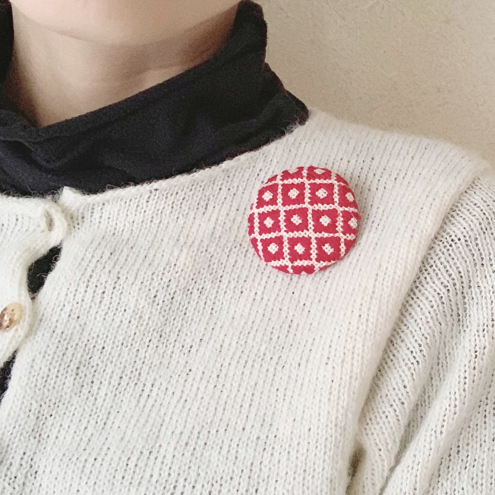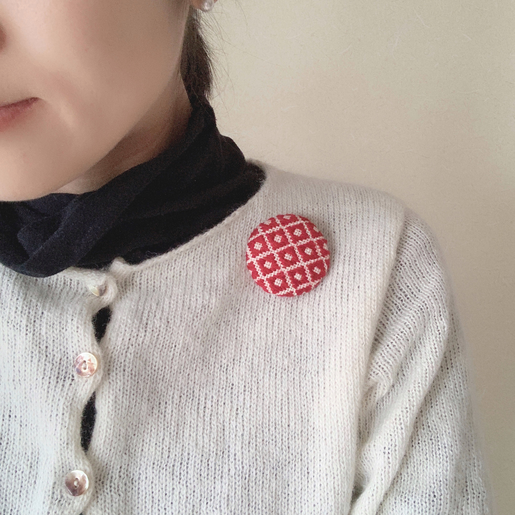 こぎん刺しのブローチを