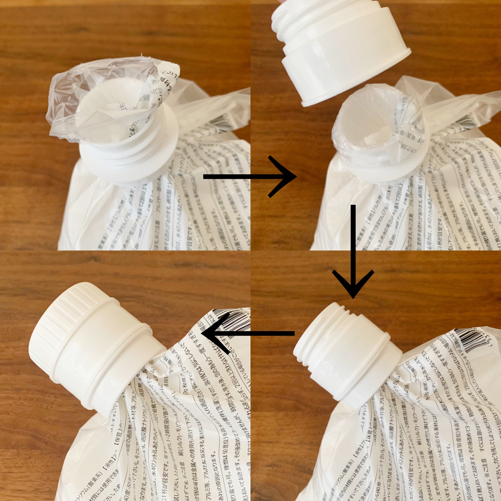 酸素系漂白剤をの袋の切り口を